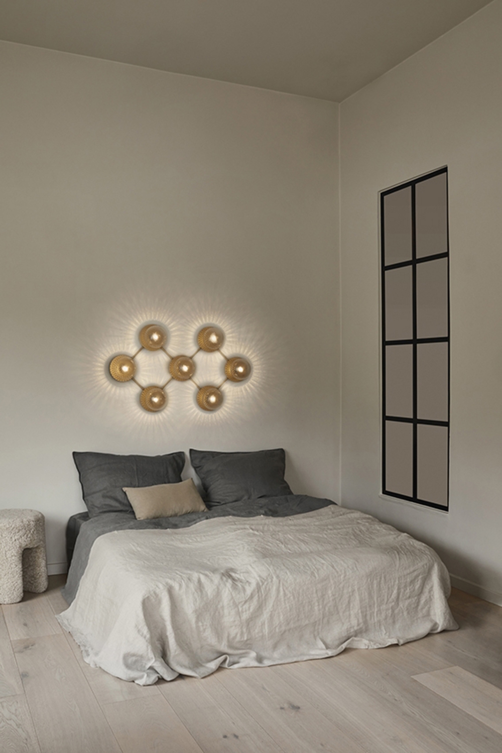 Liila kinkiet / lampa sufitowa to nowe podejście do fantastycznego designu. Zachwycające światło rozchodzi się z przezroczystych szklanych kul, tworząc elegancki wyraz. Konstrukcja to minimalistyczna kratka - prosta i elegancka, co jest charakterystyczne dla nordyckiego designu.
