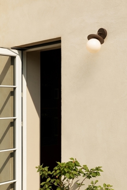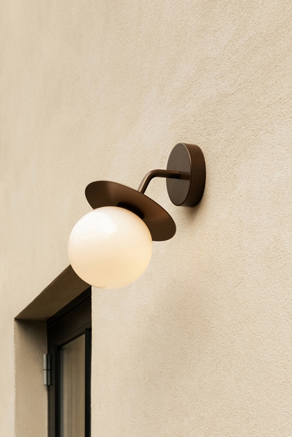Liila Outdoor kinkiet dostępny jest z ramą w ciemnym brązie i czerni z przezroczystym lub opalowym szkłem.