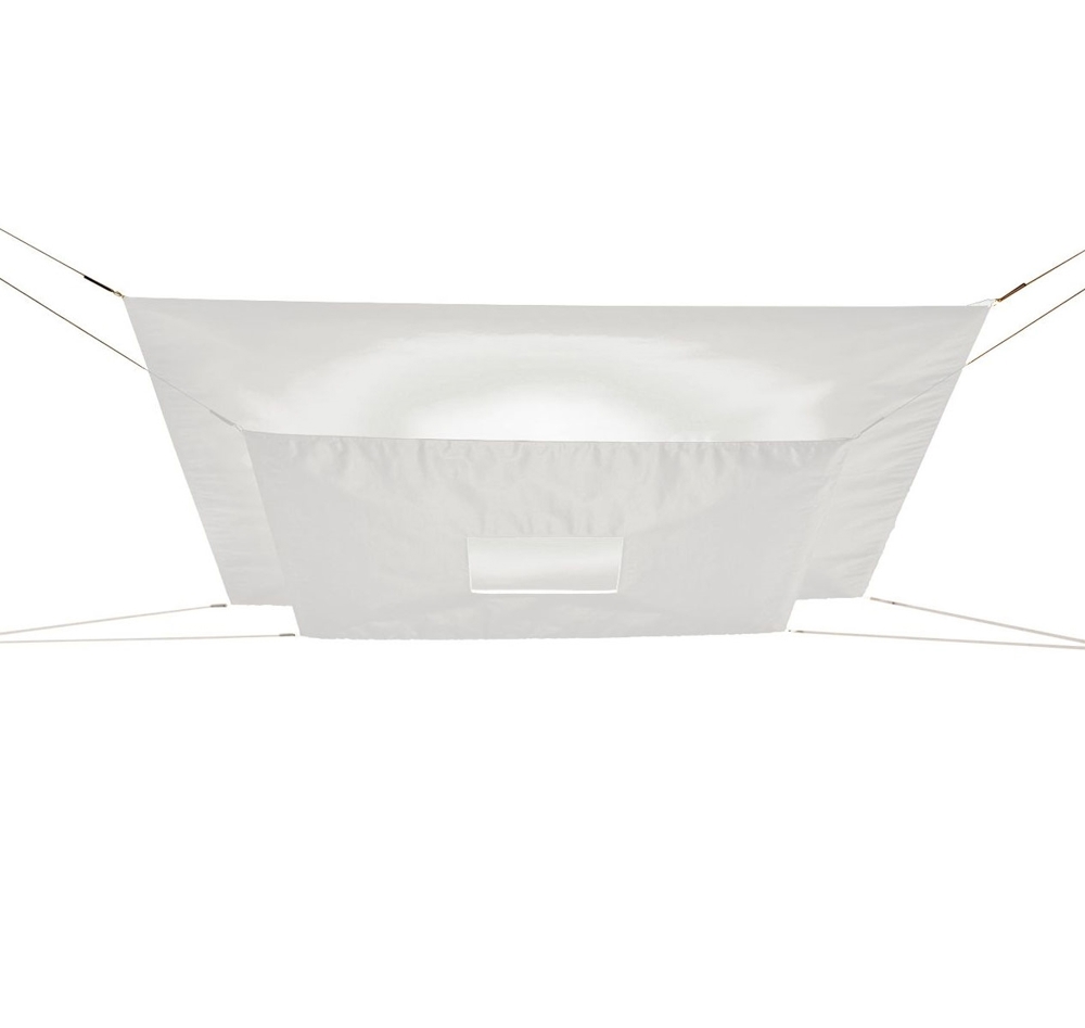 Lampa sufitowa Ingo Maurer Lil Luxury 2 to mniejsza wersja lampy sufitowej Lil Luxury. Wykonana z papieru lakierowanego na złoto i aluminium. Zawieszenie z plecionych sznurków poliestrowych. Lampa składa się z dwóch żagli.