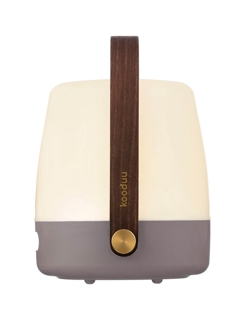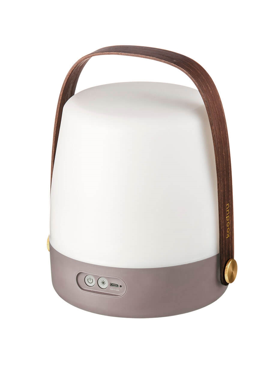 Kooduu lampa przyciąga wzrok w każdym wnętrzu. Lite-up ma korpus z białego PE z miękkim dotykiem. Uchwyt wykonany jest z ciemnego drewna.