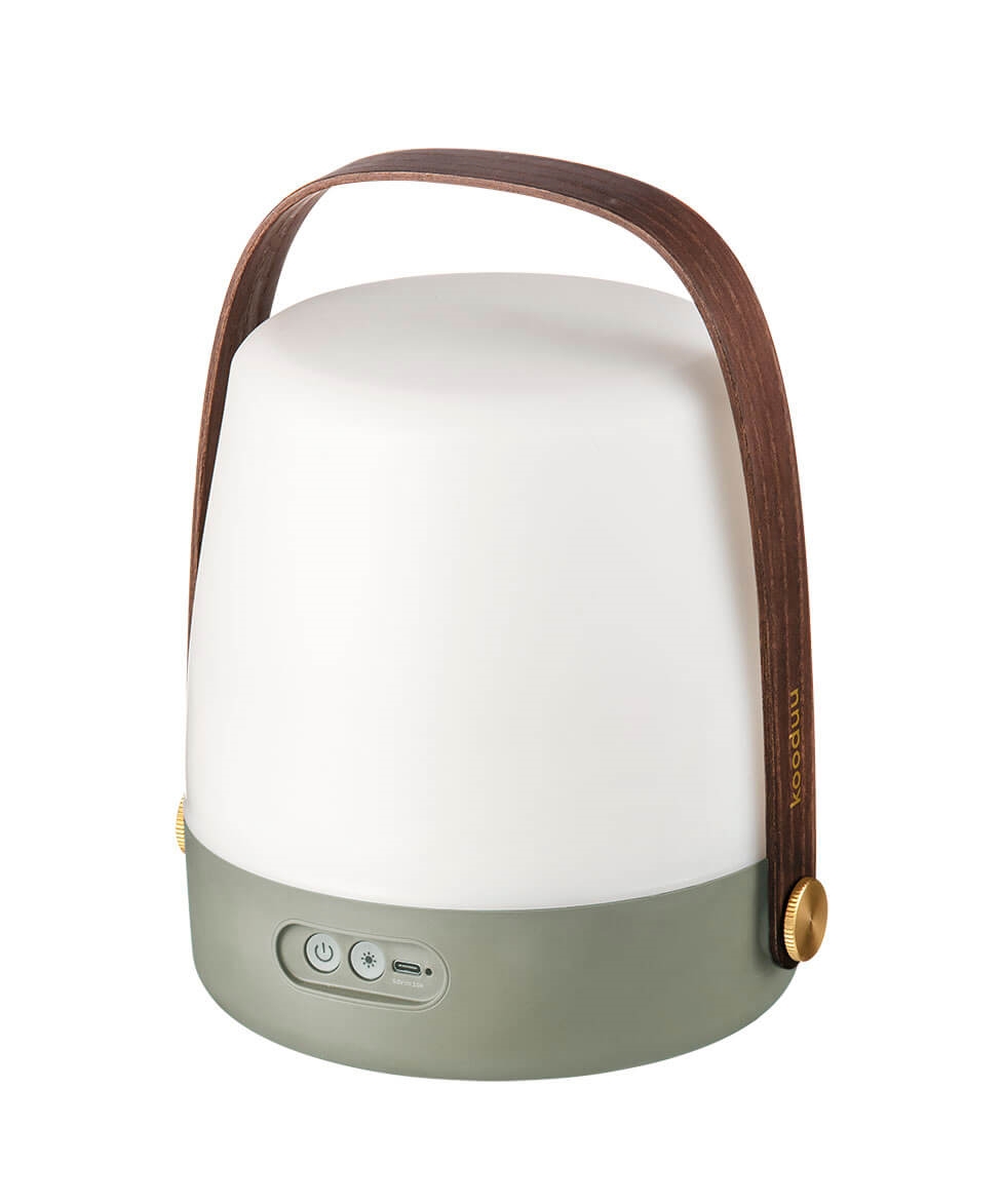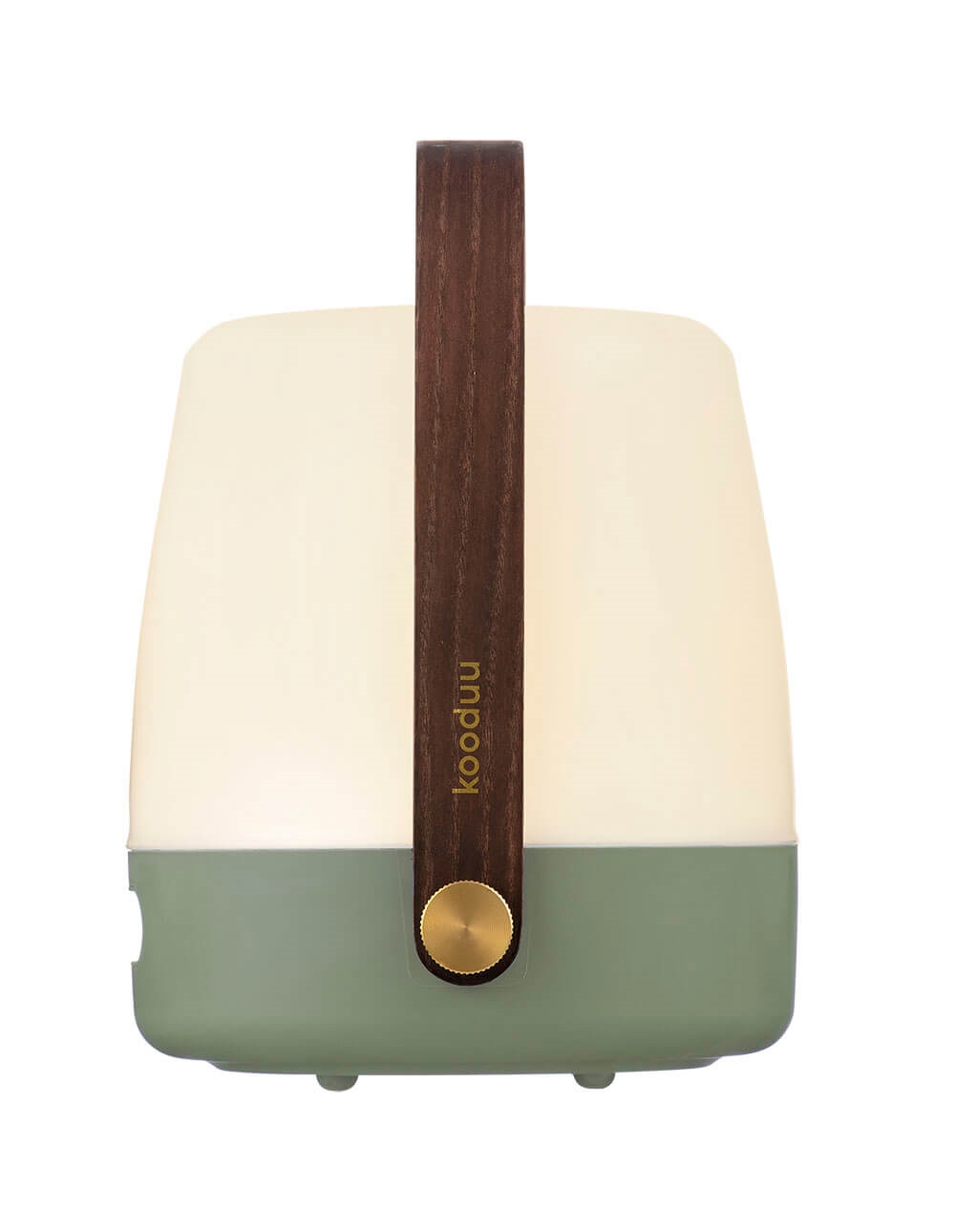 Kooduu lampa przyciąga wzrok w każdym wnętrzu. Lite-up ma korpus z białego PE z miękkim dotykiem. Uchwyt wykonany jest z ciemnego drewna.