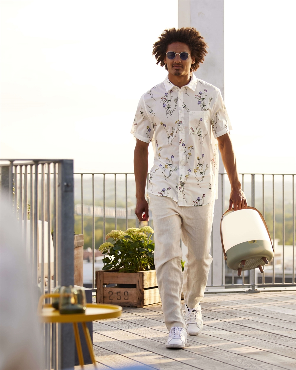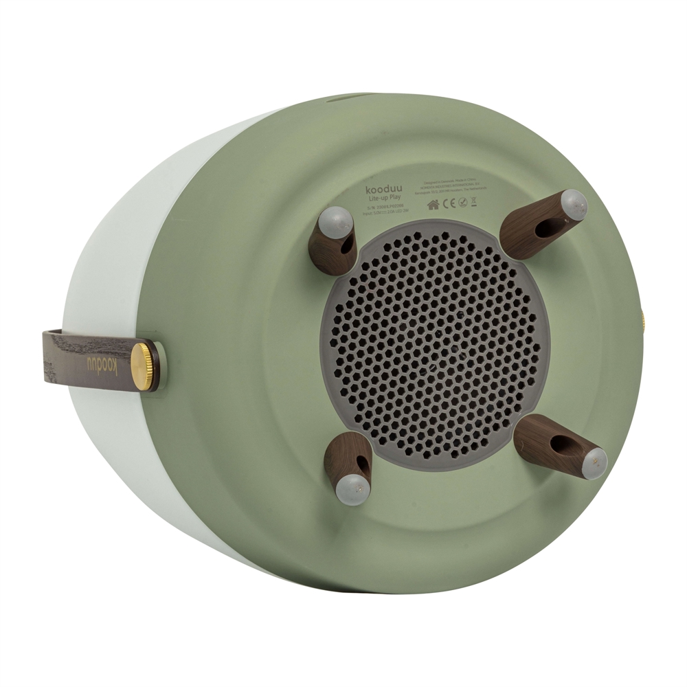 Kooduu lampa przyciąga wzrok w każdym wnętrzu. Lite-up Play ma korpus z białego PE i uchwyt z ciemnego drewna. Lampę głośnikową można używać zarówno wewnątrz, jak i na zewnątrz, pod warunkiem, że zostanie zabrana do środka po użyciu.