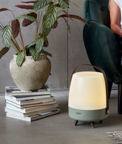 Lite-up Play dostępna jest w różnych kolorach - earth, petrol, sand i ocean. Seria Lite-up obejmuje również mniejszą lampę głośnikową Lite-Up Play Mini oraz lampę na baterie Lite-up, która jest tylko lampą LED.