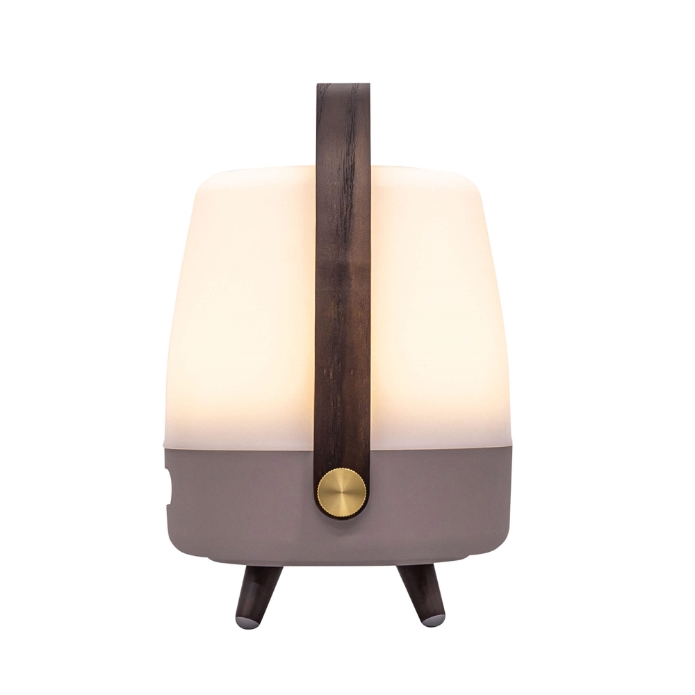 Unikalna lampa z głośnikiem przyciąga wzrok w każdym wnętrzu. Lite-up Play Mini ma korpus z białego PE i uchwyt z drewna. Również nóżki są z drewna z gumowymi zakończeniami. Lampę z głośnikiem można używać zarówno wewnątrz, jak i na zewnątrz, pod warunkiem, że zostanie zabrana do środka po użyciu.