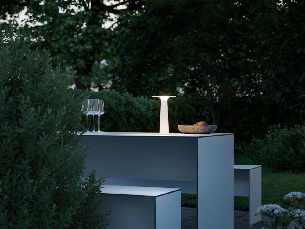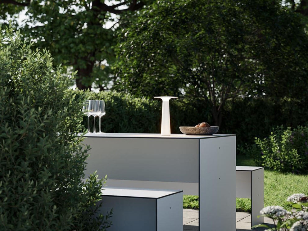 IP44.de Lix lampa bateryjna/lampka stołowa, pearl white - zaprojektowana przez Klausa Noltinga