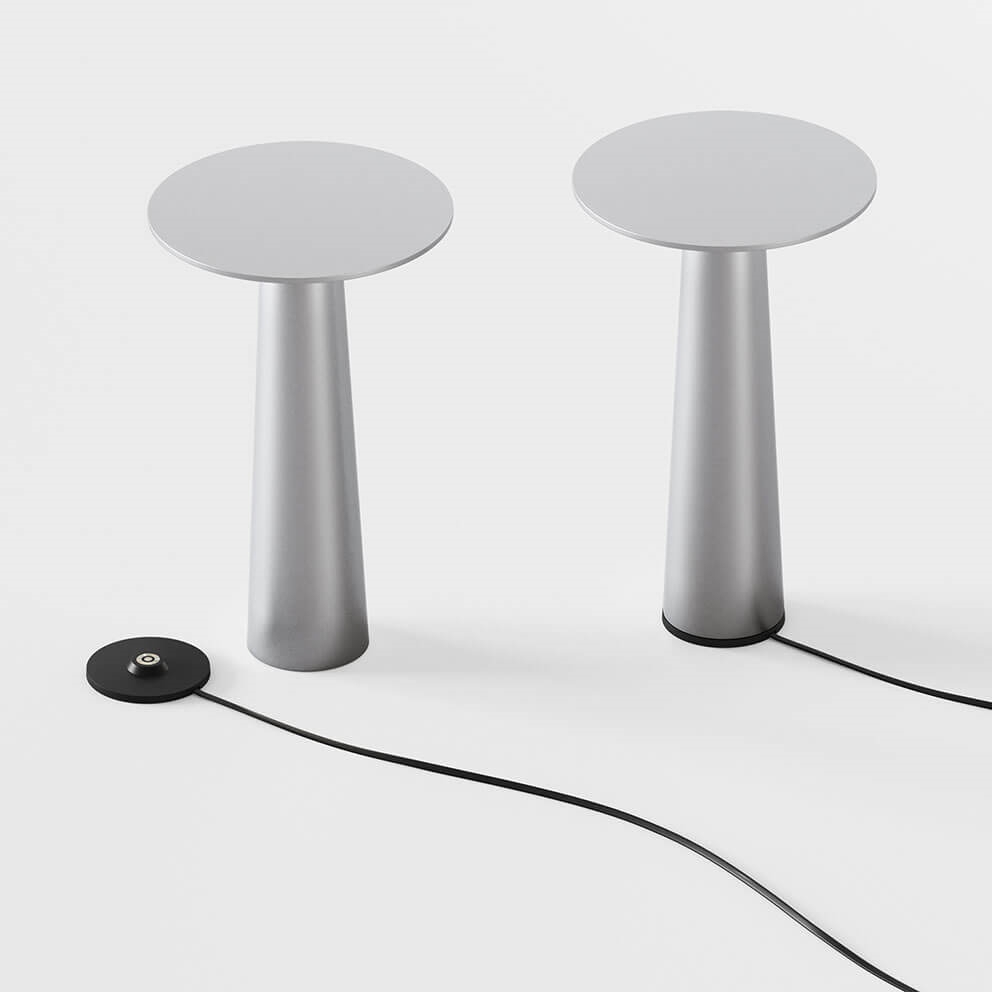 IP44.de Lix lampa bateryjna/lampka stołowa, frozen silver - zaprojektowana przez Klausa Noltinga