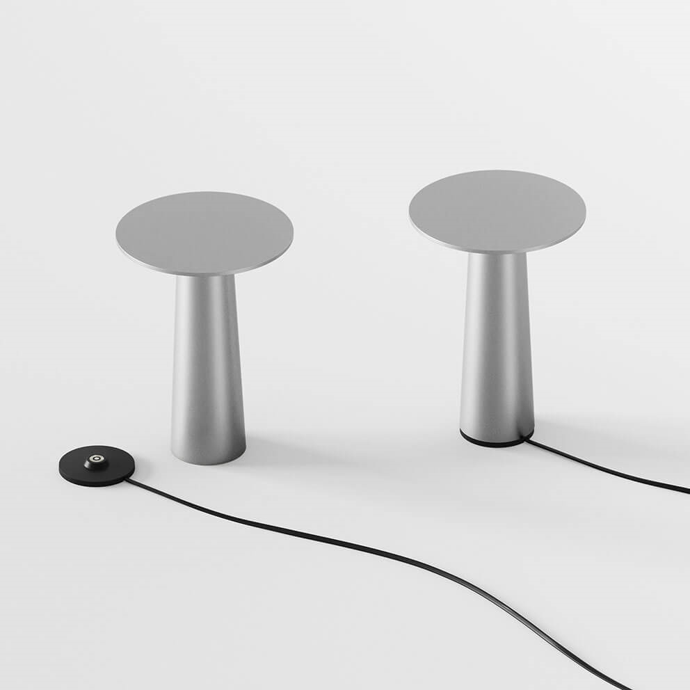 IP44.de Lix mini lampa bateryjna/lampka stołowa, frozen silver - zaprojektowana przez Klausa Noltinga