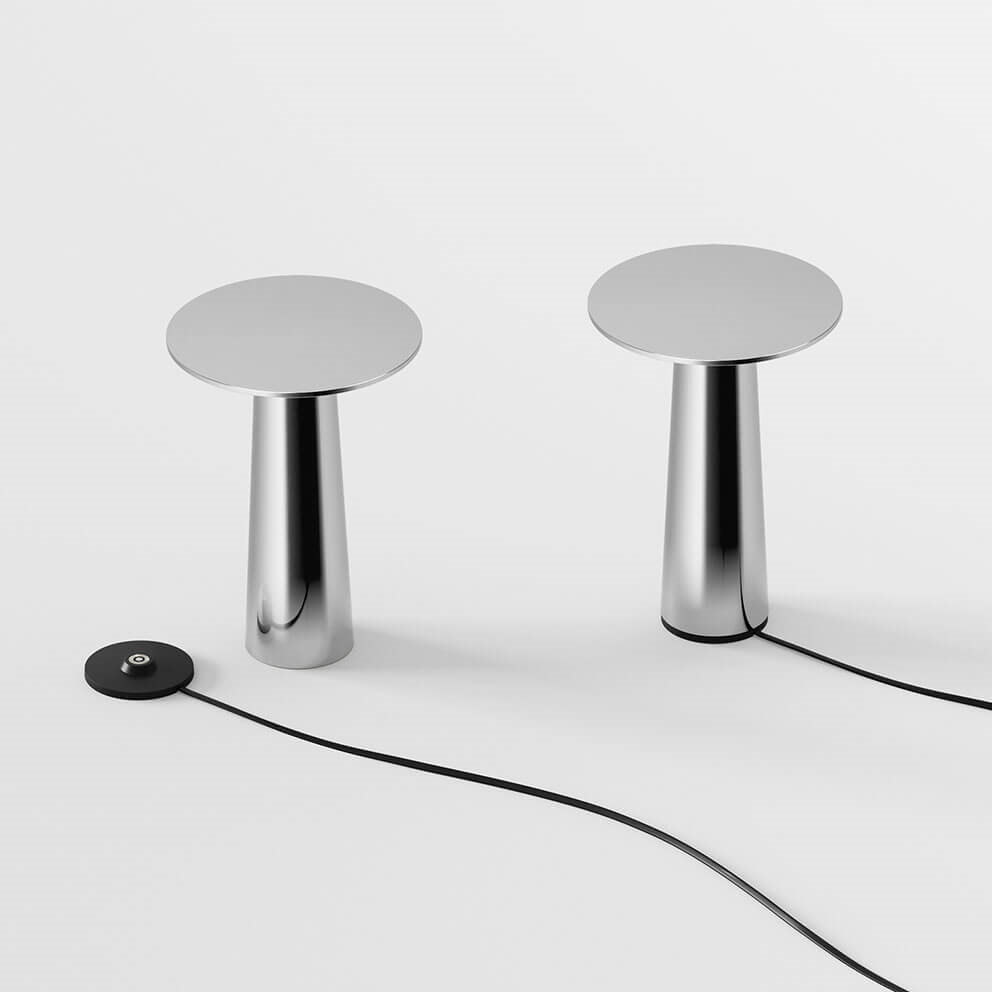 IP44.de Lix mini lampa bateryjna/lampa stołowa, chrom - zaprojektowana przez Klausa Noltinga