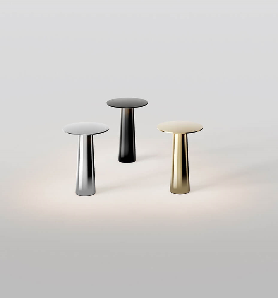 Lampa stołowa Lix mini jest dostępna w różnych wykończeniach, z których większość jest zaprojektowana do użytku zarówno wewnętrznego, jak i zewnętrznego. Ta wersja w chromie jest zalecana do użytku wewnętrznego, podobnie jak wersje w ciemnym chromie i mosiądzu. Seria obejmuje również większy wariant Lix.
