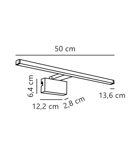 Wymiary: L50 x D13,6 x H9,6 cm