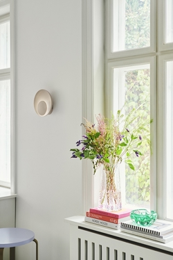 Marsi kinkiet ma unikalny design, który można ściemniać za pomocą Moodmaker w 3 krokach przez kabel. Marsi to mały kinkiet, dostępny w trzech kolorach: zielonym, beżowym i białym. Składa się z dwóch okrągłych ekranów, gdzie światło odbija się na tylny ekran, tworząc przytulne i rozproszone światło.