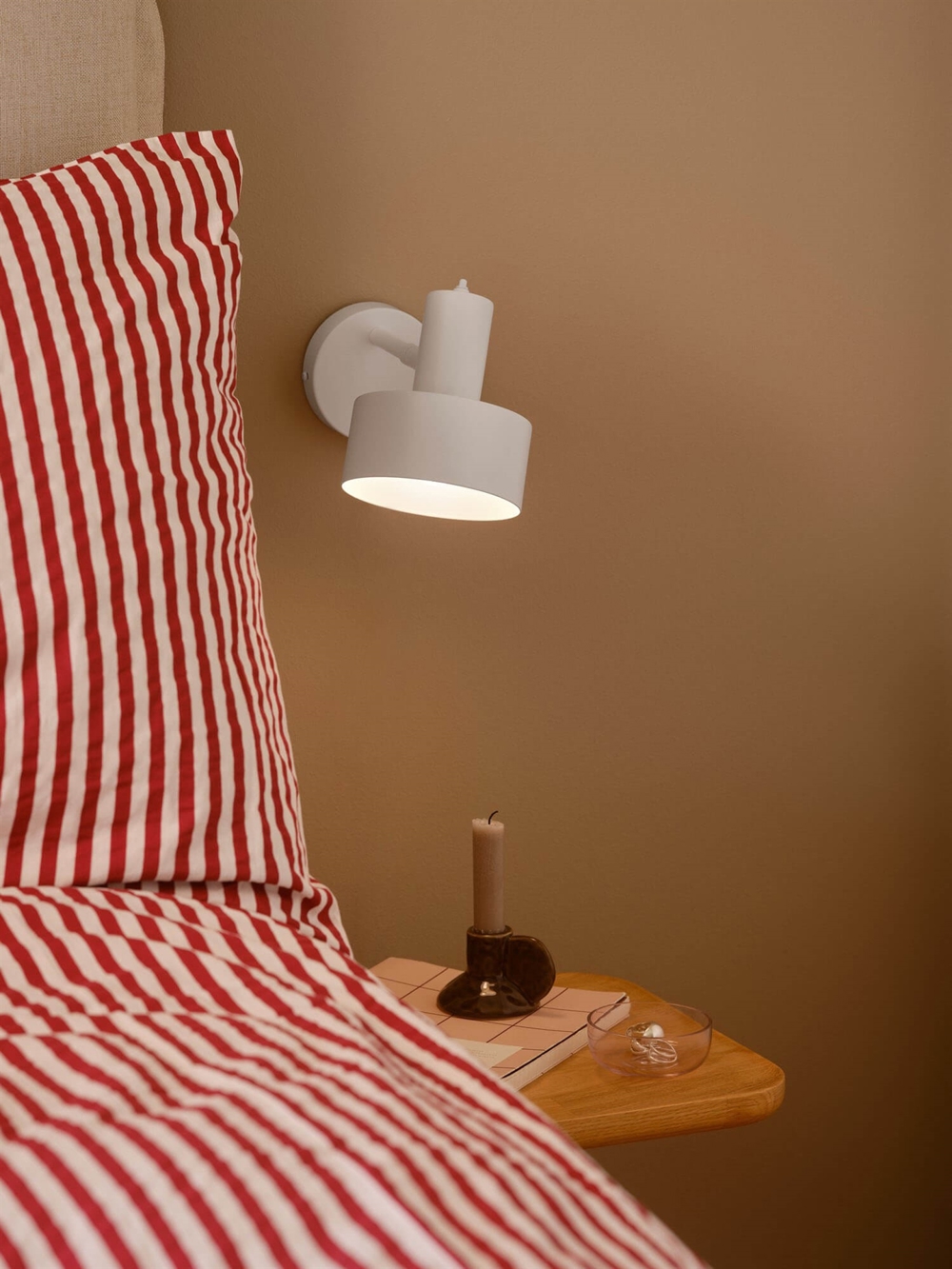 Kinkiet Matis ma minimalistyczny design, który doskonale wpasuje się w wiele wnętrz. Klasyczny kinkiet ma regulowaną głowicę lampy, którą można przechylać o 90° i obracać o 320°. Lampa daje dobre światło i tworzy piękny efekt świetlny przez małe otwory na górze klosza. Użyj kinkietu jako lampki nocnej w sypialni, oświetlenia roboczego przy biurku lub lampki do czytania przy fotelu w salonie.