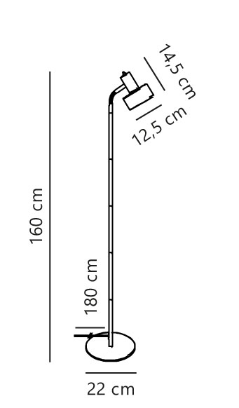 Wymiary: Wys. 160 cm, klosz: Ø12,5 x Wys. 14,5 cm, podstawa: Ø22 cm