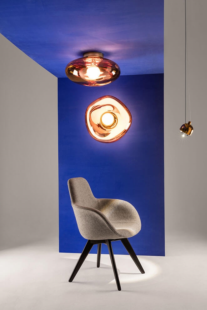 Seria Melt powstała we współpracy między Tom Dixon a szwedzkim kolektywem designerskim Front z zamiarem stworzenia niedoskonałego, organicznego i naturalistycznego obiektu świetlnego. Wyraz serii inspirowany jest stopionym szkłem, wnętrzem topniejącego lodowca i obrazami głębokiego kosmosu.