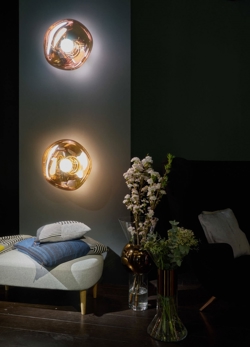 Melt Surface może być używany zarówno jako kinkiet, jak i lampa sufitowa, oferując dzięki specjalnej metalizacji efekt szkła, gdy jest włączony, oraz wykończenie lustrzane, gdy jest wyłączony.