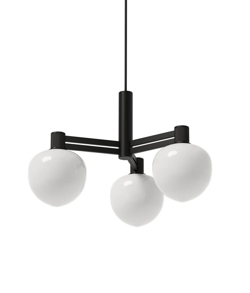 Żyrandol składa się z 3-warstwowego opalowego szkła, które pięknie łączy się z czarnymi detalami. Grube opalowe szkło osłania źródło światła, dzięki czemu jest ono nieoślepiające i jednolite w pomieszczeniu. Żyrandol idealnie nadaje się nad stół kuchenny lub stolik kawowy.