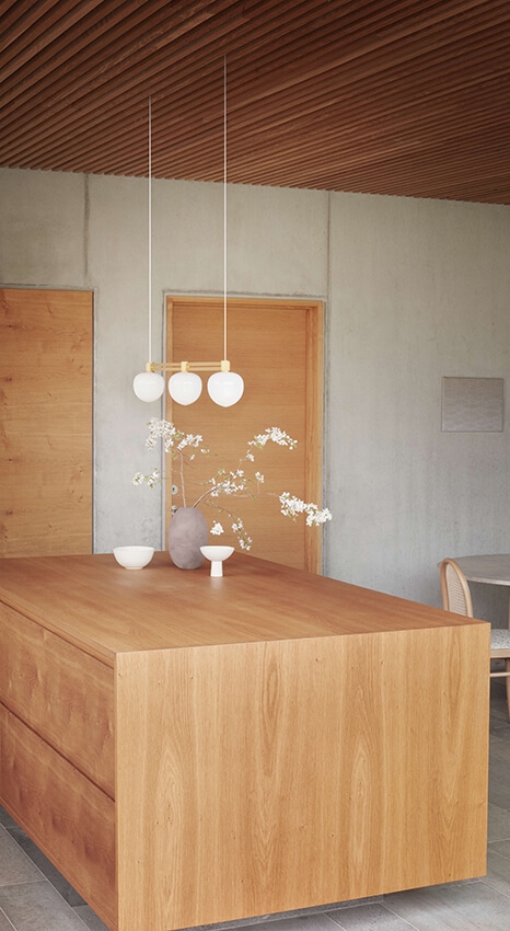 Pendel składa się z 3-warstwowego opalowego szkła, które pięknie łączy się z czarnymi detalami. Grube opalowe szkło osłania źródło światła, dzięki czemu jest ono bezodblaskowe i jednolite w pomieszczeniu. Idealnie pasowałby nad wyspę kuchenną lub nad podłużny stół jadalny.