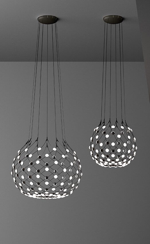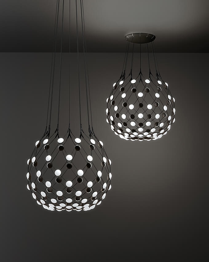 Mesh ma unikalny design i zapewnia dużą teatralną efektywność tam, gdzie jest zawieszony. Dzięki konstrukcji lampy uzyskuje się dużą dystrybucję światła. Może być idealnym rozwiązaniem nad stołem jadalnym.