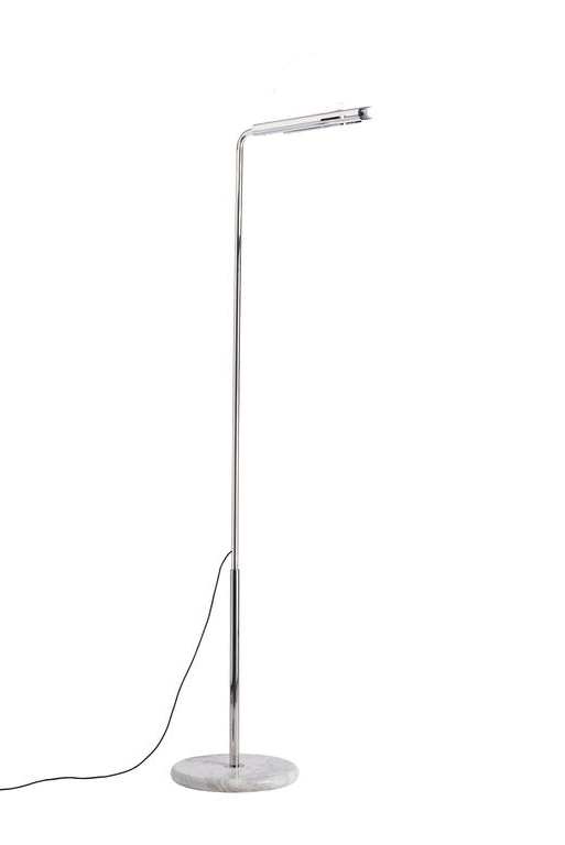 Piękna lampa podłogowa ma podstawę z białego marmuru i stojak z chromu, a jej wysokość można regulować za pomocą systemu teleskopowego. Klosz z aluminium z chromowanym wykończeniem można przechylać, aby zmienić kierunek światła.
