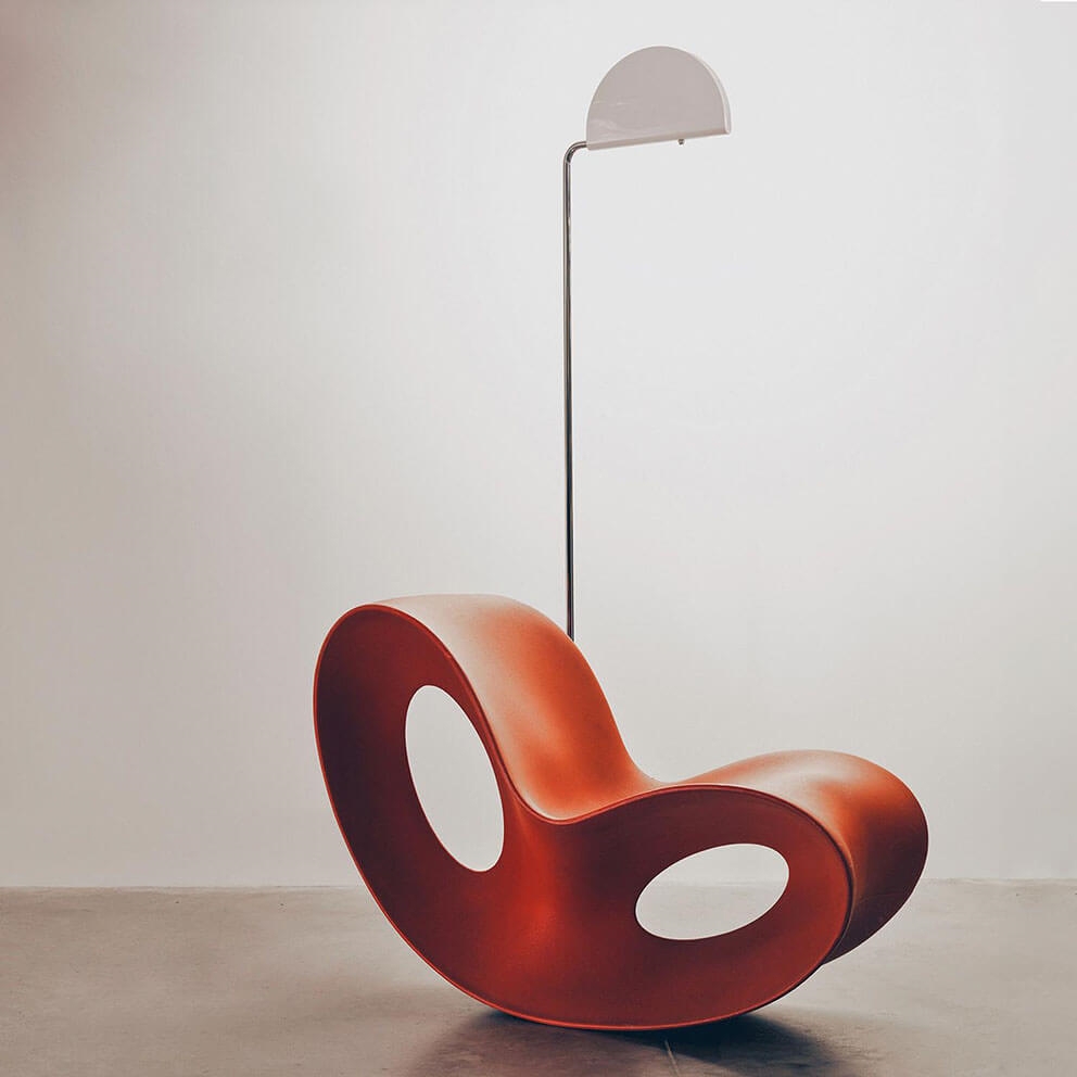 Ikoniczna lampa podłogowa Mezzaluna lampa podłogowa zaprojektowana w 1975 roku przez Bruno Gecchelin jest międzynarodowym bestsellerem i punktem odniesienia w włoskim designie. Ta relaunchowana wersja z charakterystycznym półksiężycowym kloszem jest wyposażona w zintegrowane, ściemnialne źródło światła LED, które dostarcza do 6000 lumenów. Temperaturę barwową światła można zmieniać za pomocą dołączonych filtrów z 3000K na 2700K lub 2400K.
