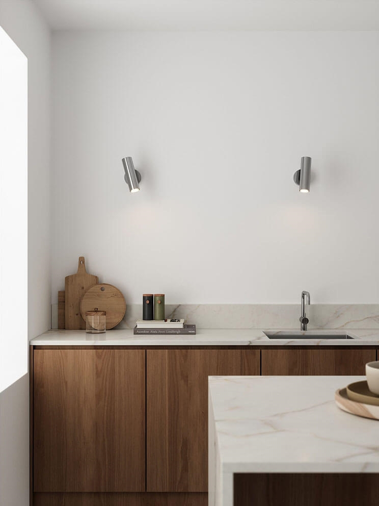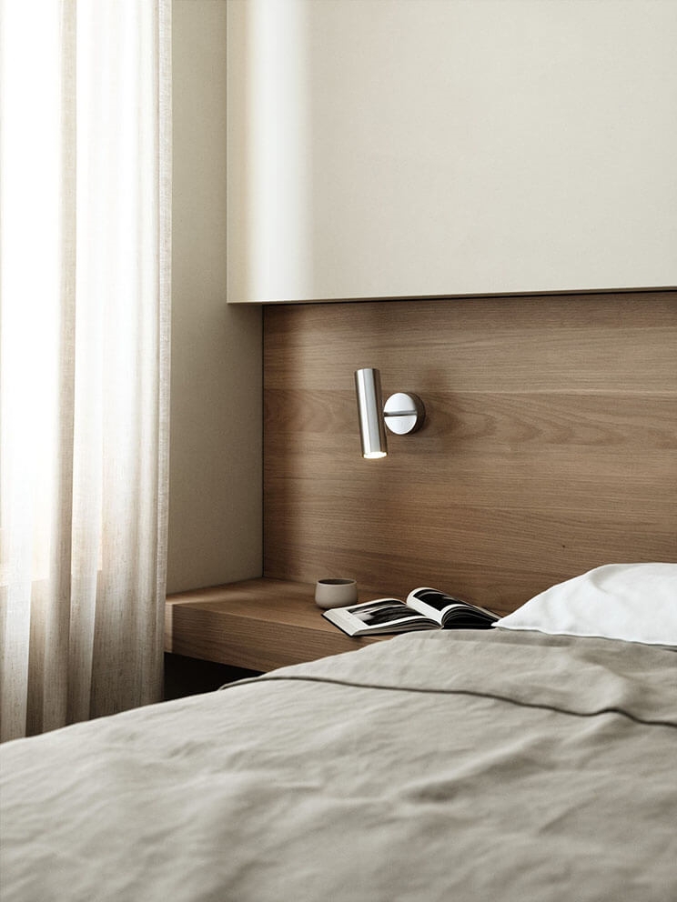 Głowica kinkietu MIB 6 może być pochylana o 90° i obracana o 320°, dostarczając precyzyjne i kierunkowe światło. Użyj lampy jako lampki do czytania przy fotelu lub łóżku, dodając funkcjonalne i eleganckie oświetlenie do swojego wnętrza.