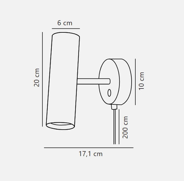 Wymiary: L17,1, głowica lampy: H20 x Ø6 cm, podstawa Ø10