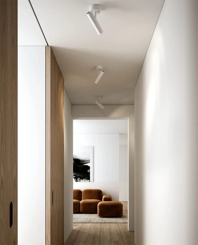 Lampa sufitowa MIB może być używana samodzielnie lub w grupie w kuchni, korytarzu lub w każdym innym pomieszczeniu wymagającym funkcjonalnego, kierunkowego światła. Reflektor można przechylać o 90° i obracać o 320°, a lampa jest zaprojektowana do montażu bezpośrednio na suficie, dzięki czemu funkcja włączania/wyłączania jest sterowana z przełącznika ściennego.