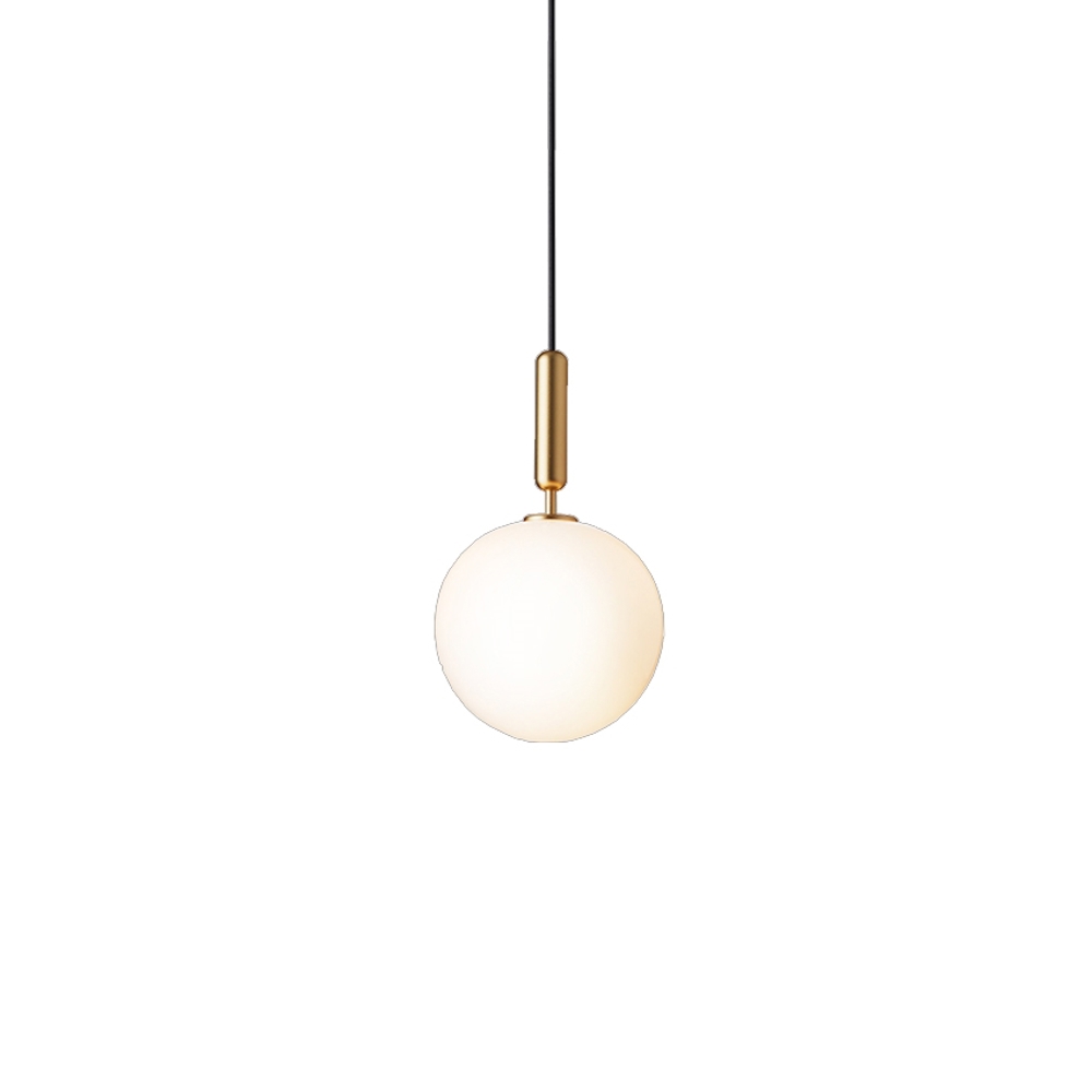 Opalowe szkło jest dmuchane ręcznie i stanowi piękny kontrast do mosiądzu.