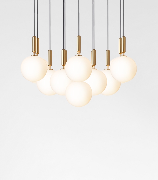 Składa się z 13 x Miira Large pendel + płyta sufitowa Ø90 cm