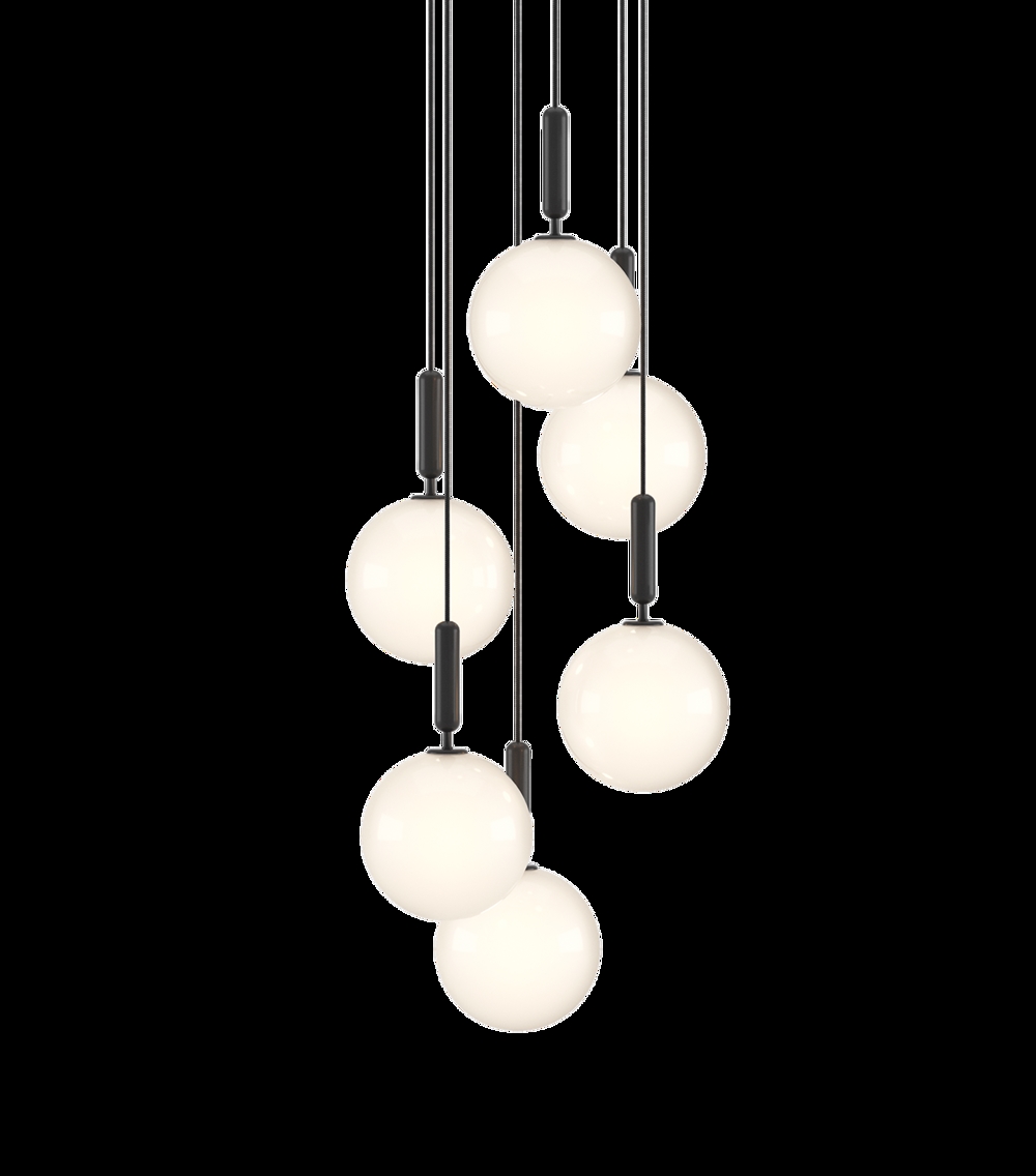 Miira 6 Large pendel składa się z 6 x Miira large + płyta sufitowa 6