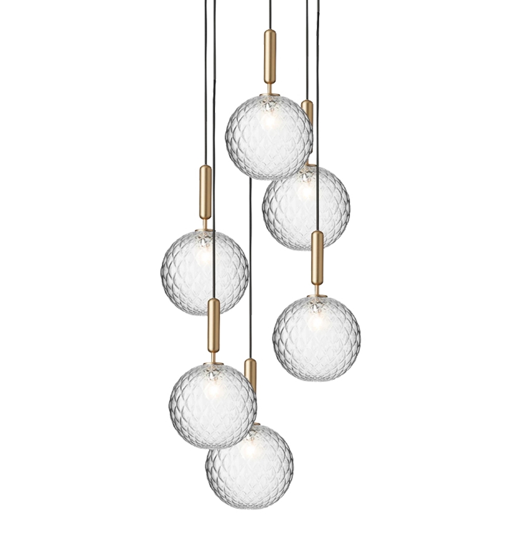 Nuura Miira 6 Large lampa wisząca, mosiądz/przezroczysta - zaprojektowana przez Sofie Refer.