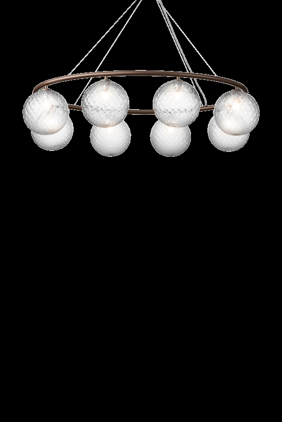 Miira 8 Oval żyrandol, ciemny brąz/przezroczysty od Nuura - zaprojektowany przez Sofie Refer