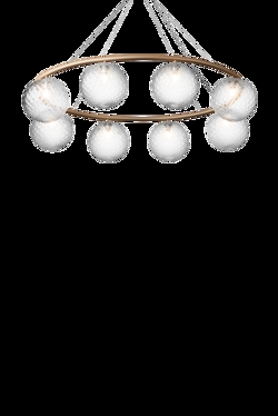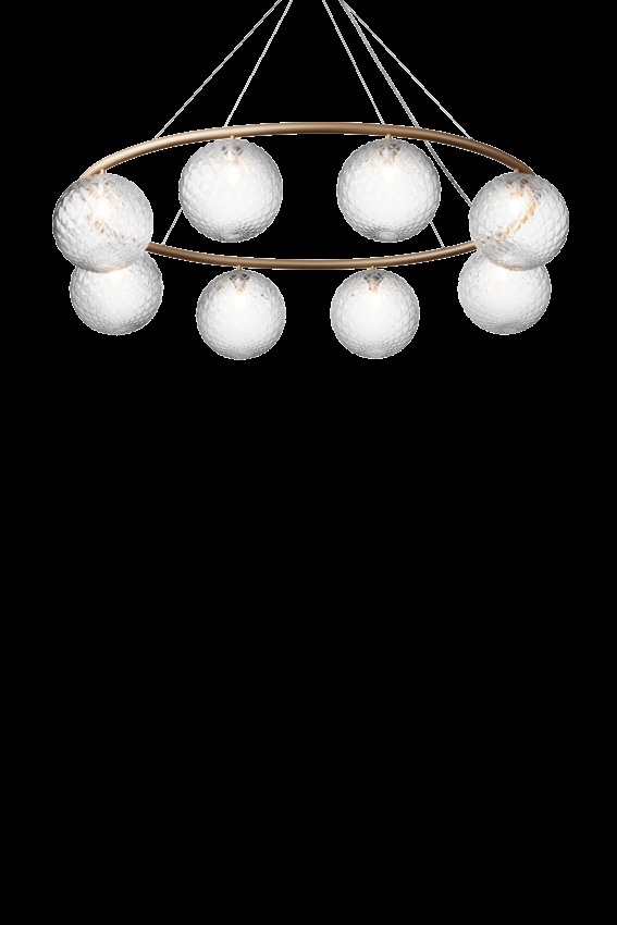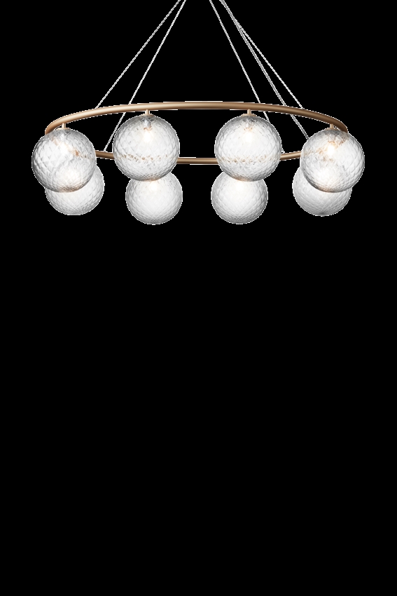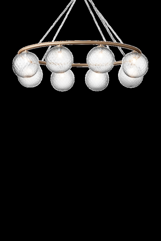 Żyrandol Miira składa się z metalowego pierścienia z anodowanego aluminium w pięknym mosiężnym kolorze. Stąd piękne dmuchane szklane kule rozpraszają zmysłowe światło. Prosta i klasyczna forma sprawia, że żyrandol jest niezwykle użyteczny w wielu aranżacjach.