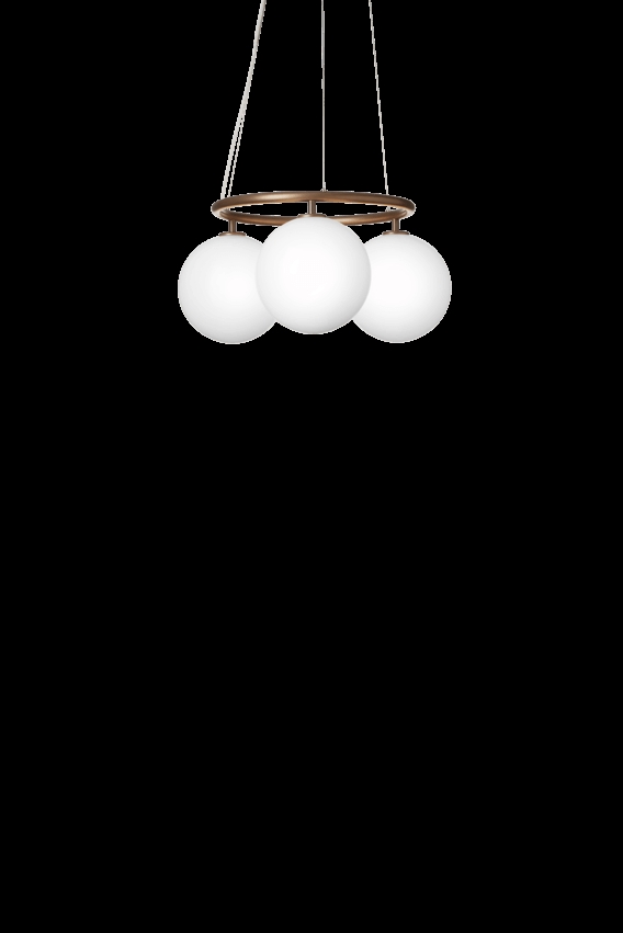 Żyrandol Miira składa się z pierścienia metalowego pokrytego proszkowo w kolorze mosiądzu. Stąd piękne dmuchane szklane klosze z przezroczystego optycznego szkła rozpraszają zmysłowe światło. Prosta i klasyczna forma sprawia, że żyrandol jest niezwykle użyteczny w wielu aranżacjach.
