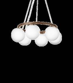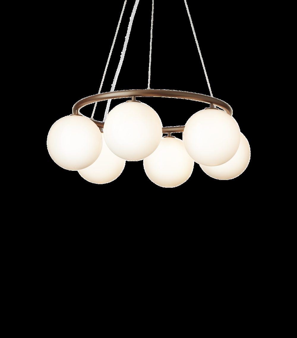 Miira 6 Circular składający się z sześciu dmuchanych szklanych kul ma średnicę 80 cm. To sprawia, że żyrandol jest idealny nad stołem jadalnym lub w strefie wypoczynkowej.