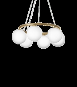 Miira 6 Circular składający się z sześciu dmuchanych szklanych kopuł ma średnicę 80 cm. To sprawia, że żyrandol jest niezwykle odpowiedni nad stołem jadalnym lub w strefie wypoczynkowej.