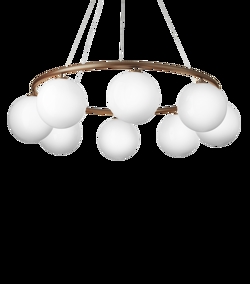 Miira 8 Circular z ośmioma szklanymi kulami ma średnicę 100 cm. Większy żyrandol jest szczególnie odpowiedni nad dużym stołem jadalnym lub jako efektowne oświetlenie w dużym holu lub korytarzu.