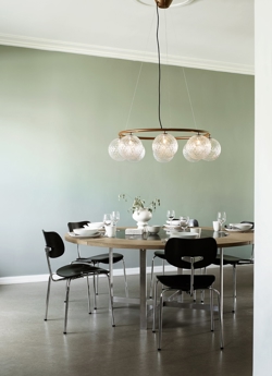 Kolekcja Miira od Nuura zdobyła już nagrody za projekt autorstwa Sofie Refer, a teraz rozszerza się o okrągły żyrandol. Żyrandol dostępny jest w dwóch rozmiarach - z 6 lub 8 dmuchanymi szklanymi kulami. Żyrandol Miira Circular ma klasyczny wygląd i jest zaprojektowany tak, aby mógł wisieć nisko lub wysoko od sufitu. Wysokość można łatwo regulować od 45 do 250 cm dzięki specjalnemu systemowi linek. Żyrandol Miira składa się z malowanego proszkowo metalowego pierścienia w nowym ciemnym kolorze brązu. Stąd piękne dmuchane szklane kule z optycznego szkła rozpraszają piękne światło. Prosta i klasyczna forma sprawia, że żyrandol jest niezwykle użyteczny w wielu aranżacjach.