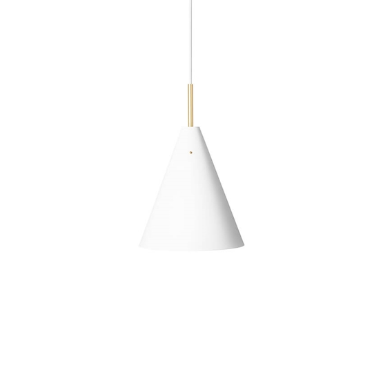Powierzchnia klosza wykonana jest z matowo malowanej stali, która pięknie łączy się z mosiężnymi detalami, dodającymi lampie ciepła. Stożkowy kształt klosza kieruje światło w dół.
