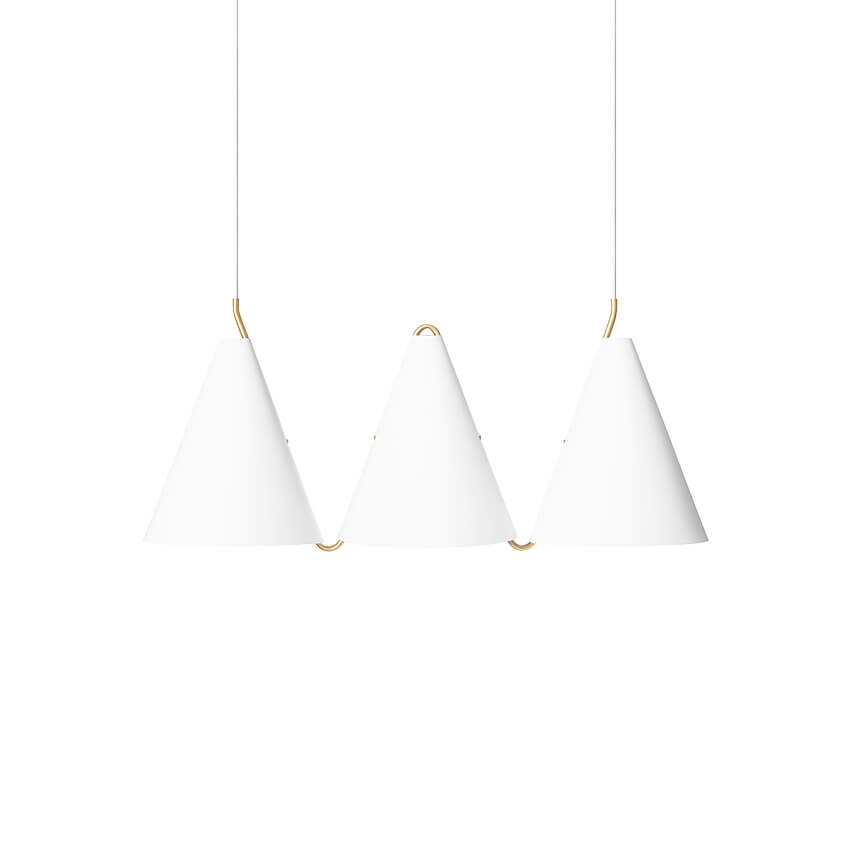 Powierzchnia klosza wykonana jest z matowo malowanej stali, która pięknie łączy się z mosiężnymi detalami, dodającymi lampie ciepła. Trzy stożkowe klosze kierują światło w dół, dając szerokie spektrum świetlne poniżej.