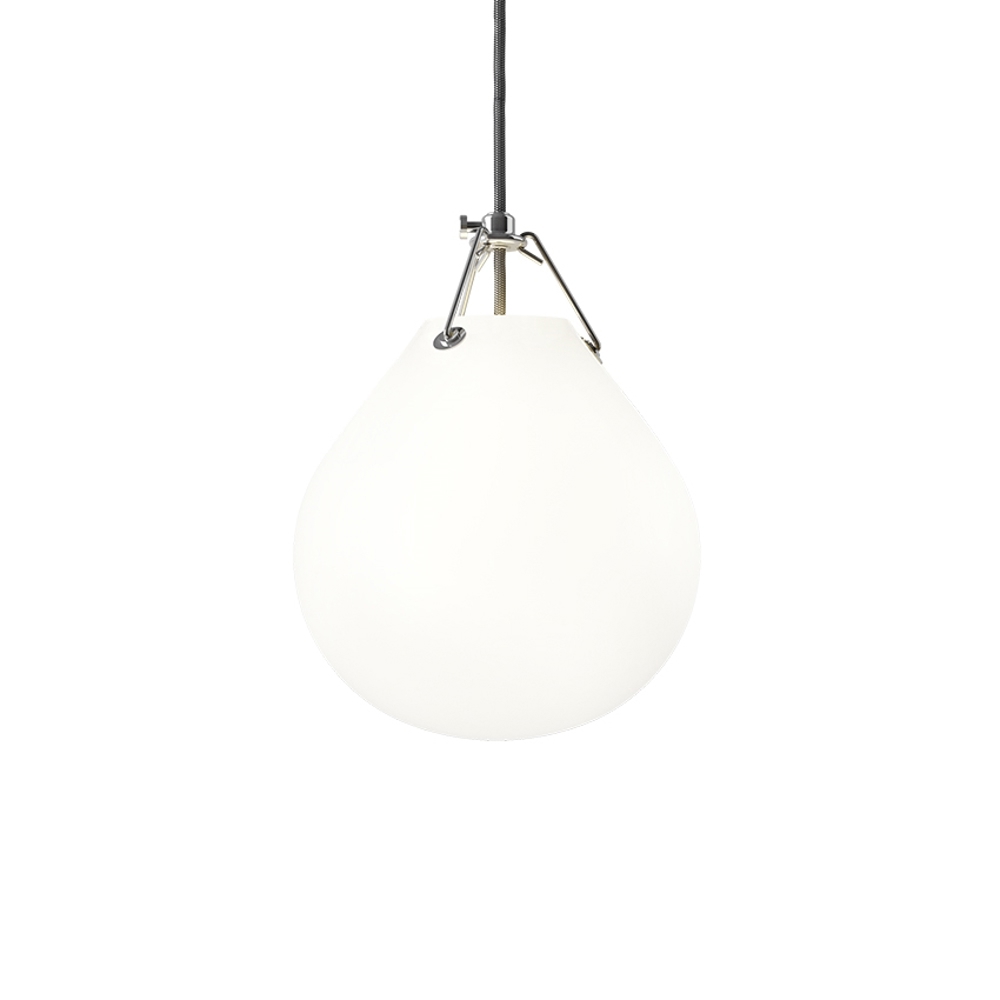 Lampa ma kształt kropli i jest wykonana z matowego białego opalowego szkła, które zapewnia rozproszone, nieoślepiające światło w każdym pomieszczeniu.