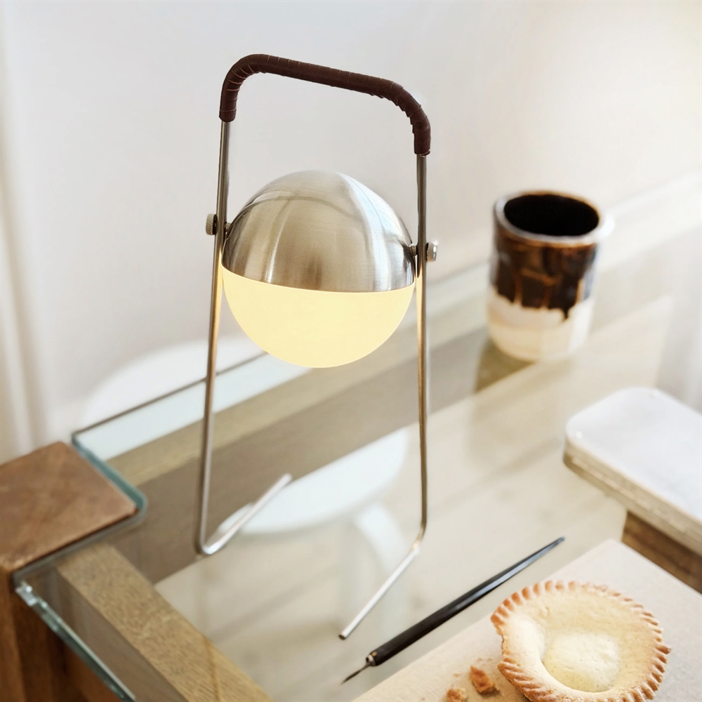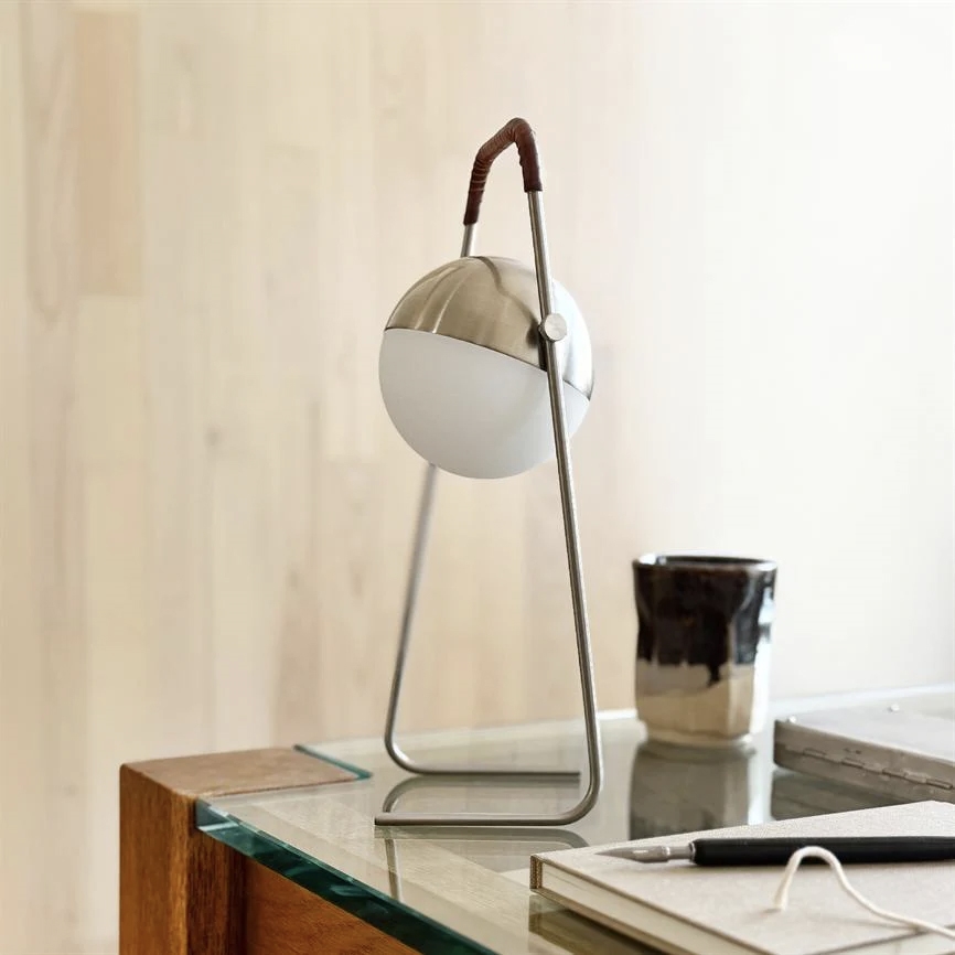 Z lampą bateryjną Mova zyskujesz elastyczne oświetlenie o czystym i przemyślanym designie. Obrotowy klosz z opalowobiałego PVC równomiernie i przyjemnie rozprasza światło, a metalowa konstrukcja nadaje lampie lekki, nowoczesny charakter. Charakterystyczny skórzany pasek dodaje ciepłego kontrastu chłodnym materiałom i ułatwia przenoszenie lampy. Dzięki klasie szczelności IP44 Mova sprawdzi się zarówno wewnątrz, jak i na zewnątrz, co czyni tę lampę bezprzewodową praktyczną w wielu sytuacjach. Użyj jej na stoliku nocnym, na parapecie, na biurku lub na tarasie.