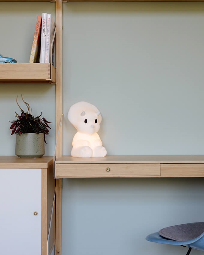 Seria First Light składa się z uroczych lamp w kształcie zwierząt, które są dobrymi przyjaciółmi i pomagają każdemu dziecku stworzyć przytulną atmosferę w pokoju dziecięcym. Mira to słodki dinozaur, który łatwo można zabrać wszędzie ze sobą.