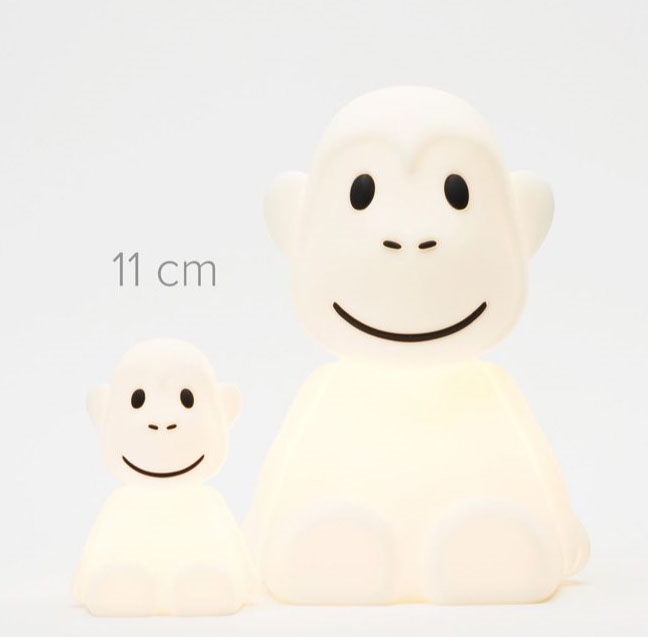 Lampa LED wyłącza się automatycznie po 15 minutach, więc nie musisz się martwić o jej wyłączenie. Bateria działa do 30 godzin. Przycisk włącz/wyłącz znajduje się na spodzie lampki. Monkey wykonana jest z miękkiego silikonu wolnego od BPA.
