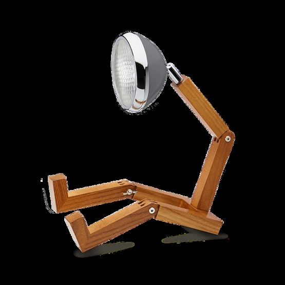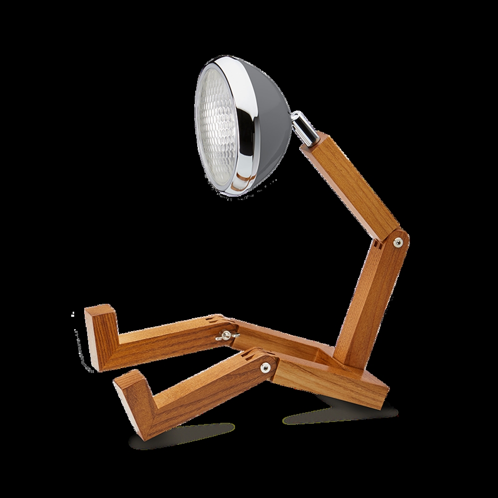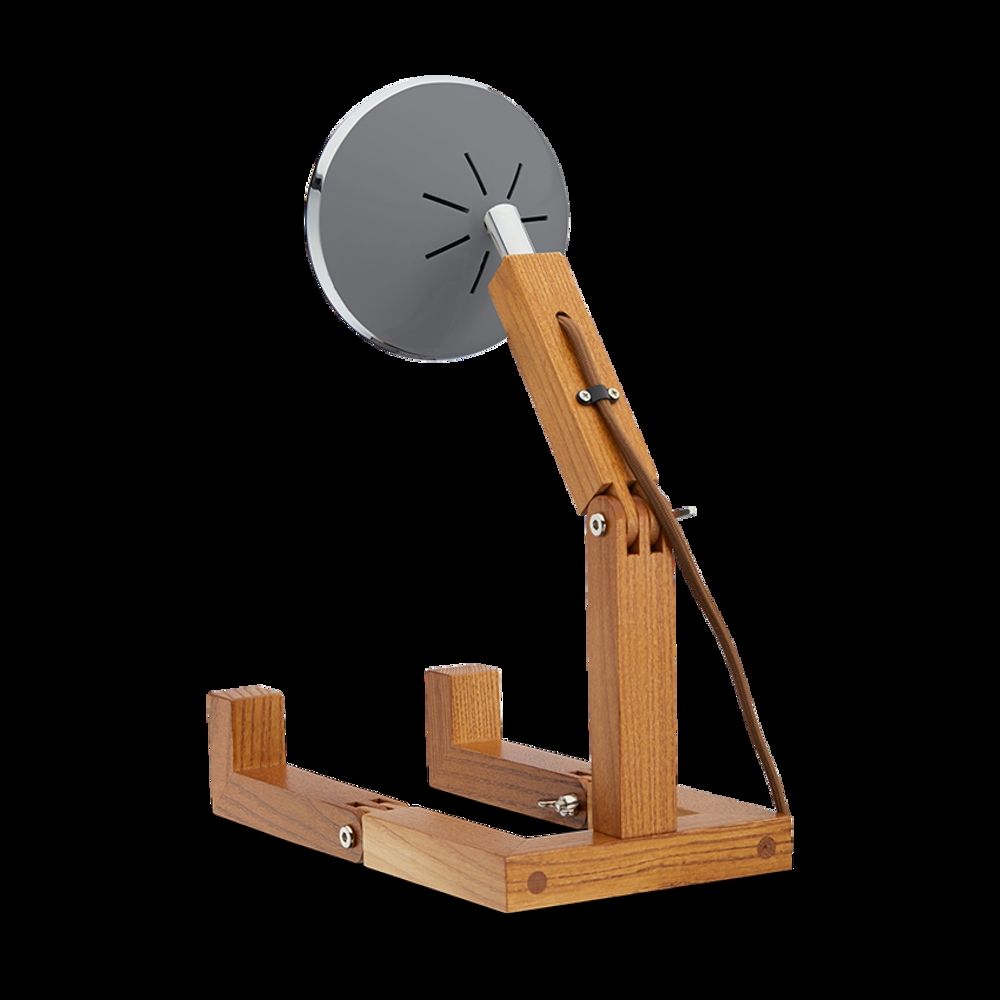 Mr. Wattson jest wykonany z drewna jesionowego, aluminium i metalu.