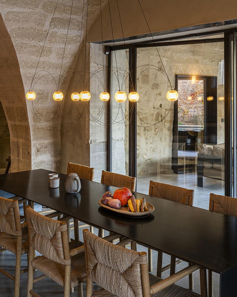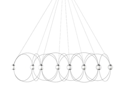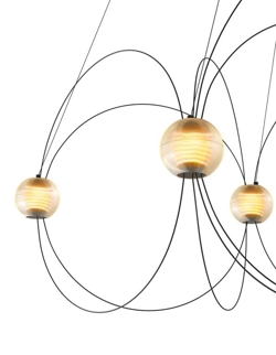 Munari emituje mocne, ale marzycielskie światło i jest dostępny z 6, 8 lub 10 kulistymi kloszami oraz strukturą w kolorze czarnym lub złotym. Idealny wybór do salonu, jadalni lub przedpokoju z wysokim sufitem.
