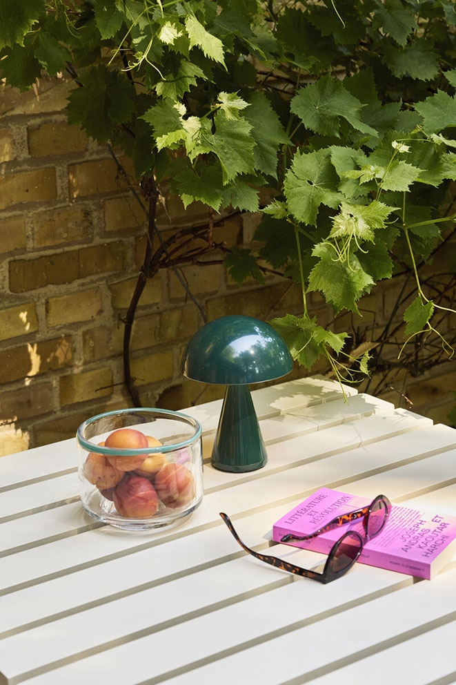 Przenośna lampa na baterie Mush Portable łączy skandynawski design z minimalistyczną elegancją w ponadczasowym stylu. Lampa stołowa jest łatwa do przenoszenia i dzięki swojemu grzybowemu kształtowi z kloszem i stożkową podstawą doskonale pasuje do wielu wnętrz. Lampa świetnie prezentuje się na półce, na stoliku nocnym lub na parapecie, a także może być używana na zewnątrz jako lampa tarasowa lub na balkonie.