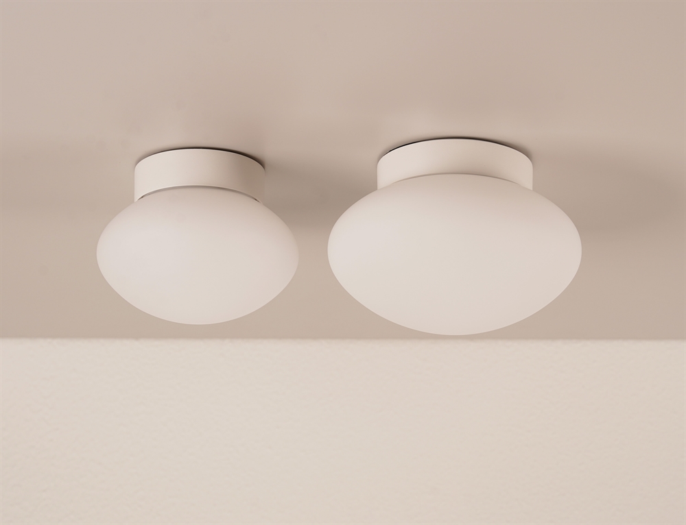 Mushroom może być używana jako lampa sufitowa lub kinkiet i ma minimalistyczny wygląd, który pasuje do wielu aranżacji. Dzięki klasie szczelności IP44 lampa świetnie sprawdzi się także w łazienkach i innych wilgotnych pomieszczeniach. Klosz z matowego szkła opalowego zapewnia równomierne, nieoślepiające światło z zintegrowanego źródła LED i tworzy relaksującą, przytulną atmosferę. To dobry wybór do łazienki, korytarza, przedpokoju i innych wnętrz, w których potrzebujesz miękkiego i komfortowego światła.