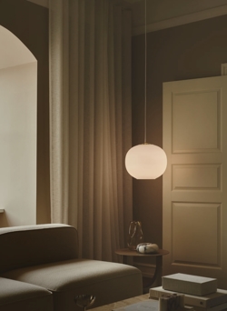 Elegancka i stylowa lampa wisząca rzuca przyjemne światło w pomieszczeniu dzięki opalowemu kloszowi, który sprawia, że światło jest stonowane i rozproszone. Navone wykonana jest ze szkła i metalu, z drobnymi detalami z mosiądzu, które dodają lampie kobiecości.
