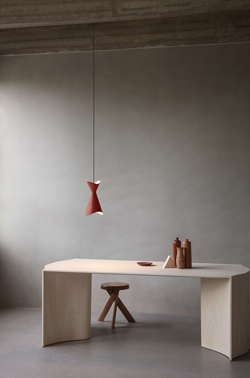 Powierzchnia pendla wykonana jest z matowo malowanej stali i dostępna jest w trzech kolorach: białym, czarnym i czerwonym oraz w 4 różnych rozmiarach.